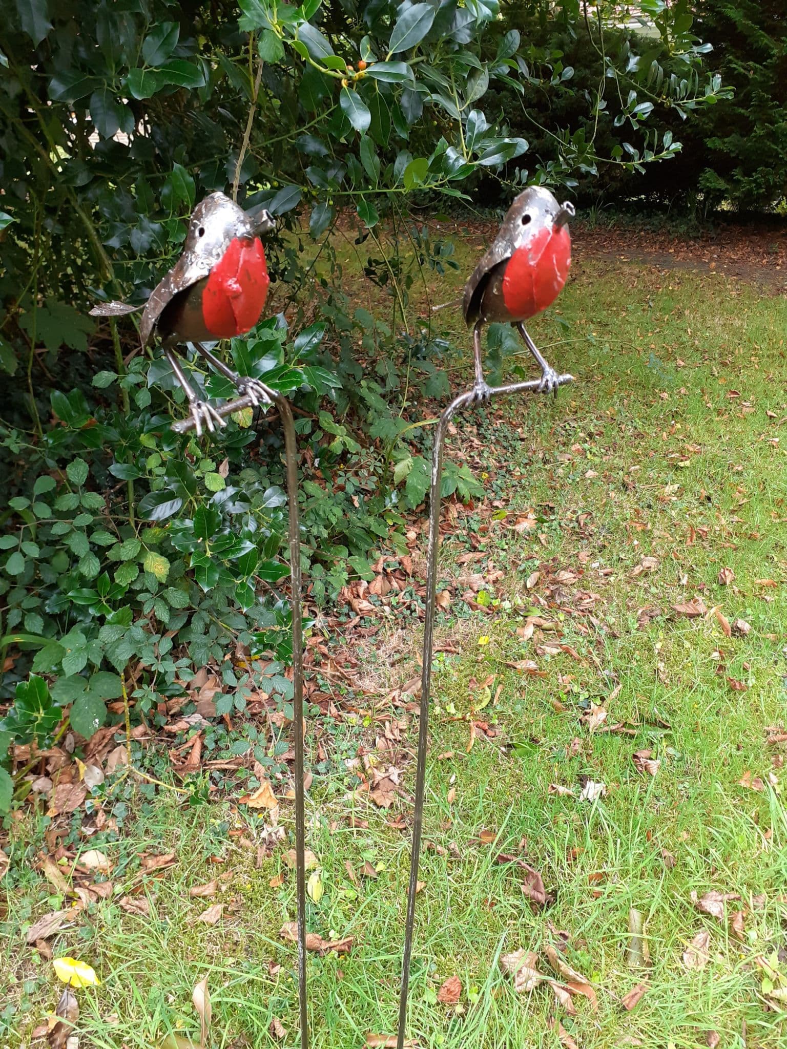 Home / Recycled / Robin Robin £18.00 Size: Freestanding Stick Add to your Wish List Info Friendly Robins with their red breast .......... lovely , either free standing , or on a stick , ideal for the garden ..... & great for Christmas too .....