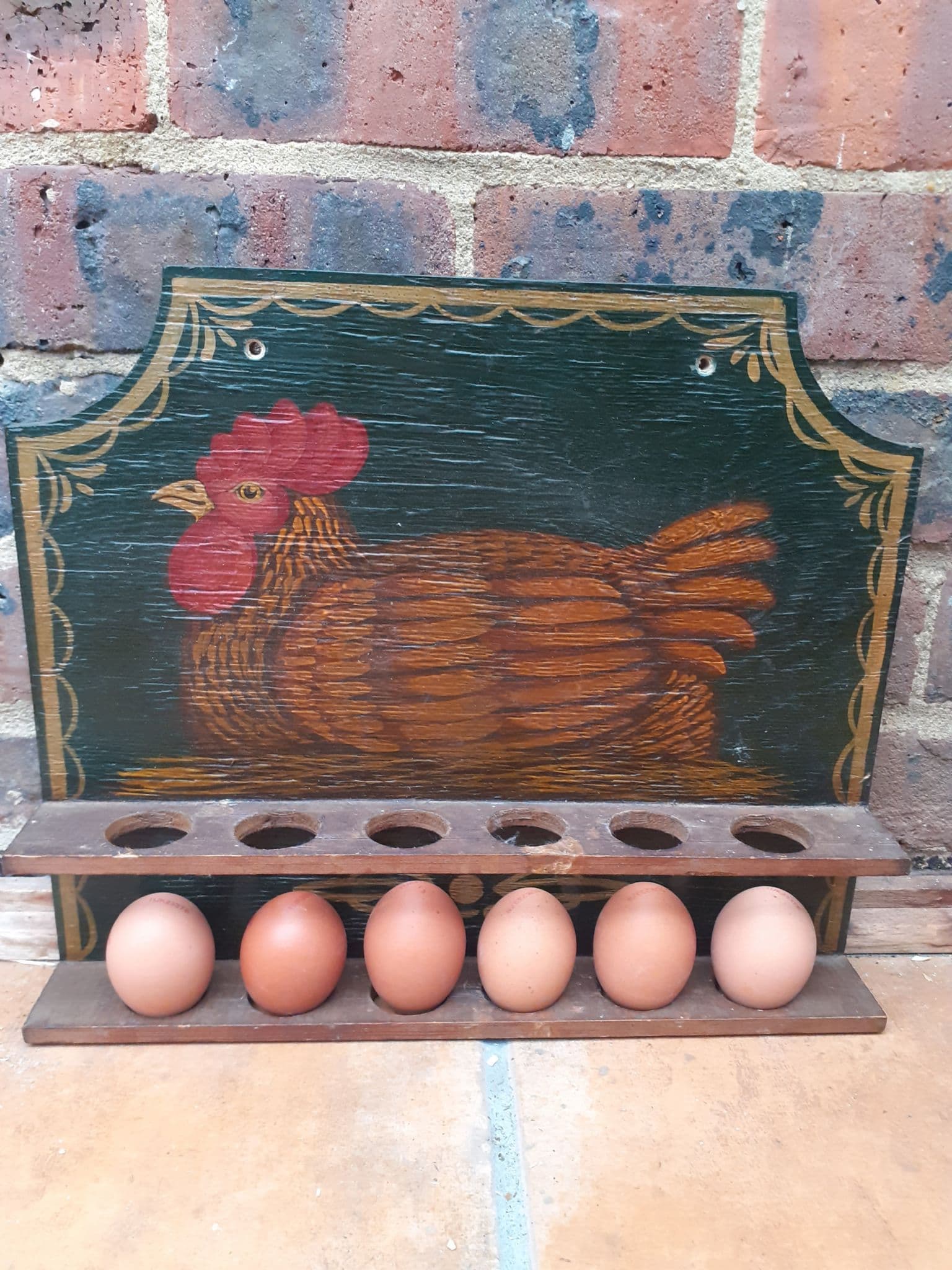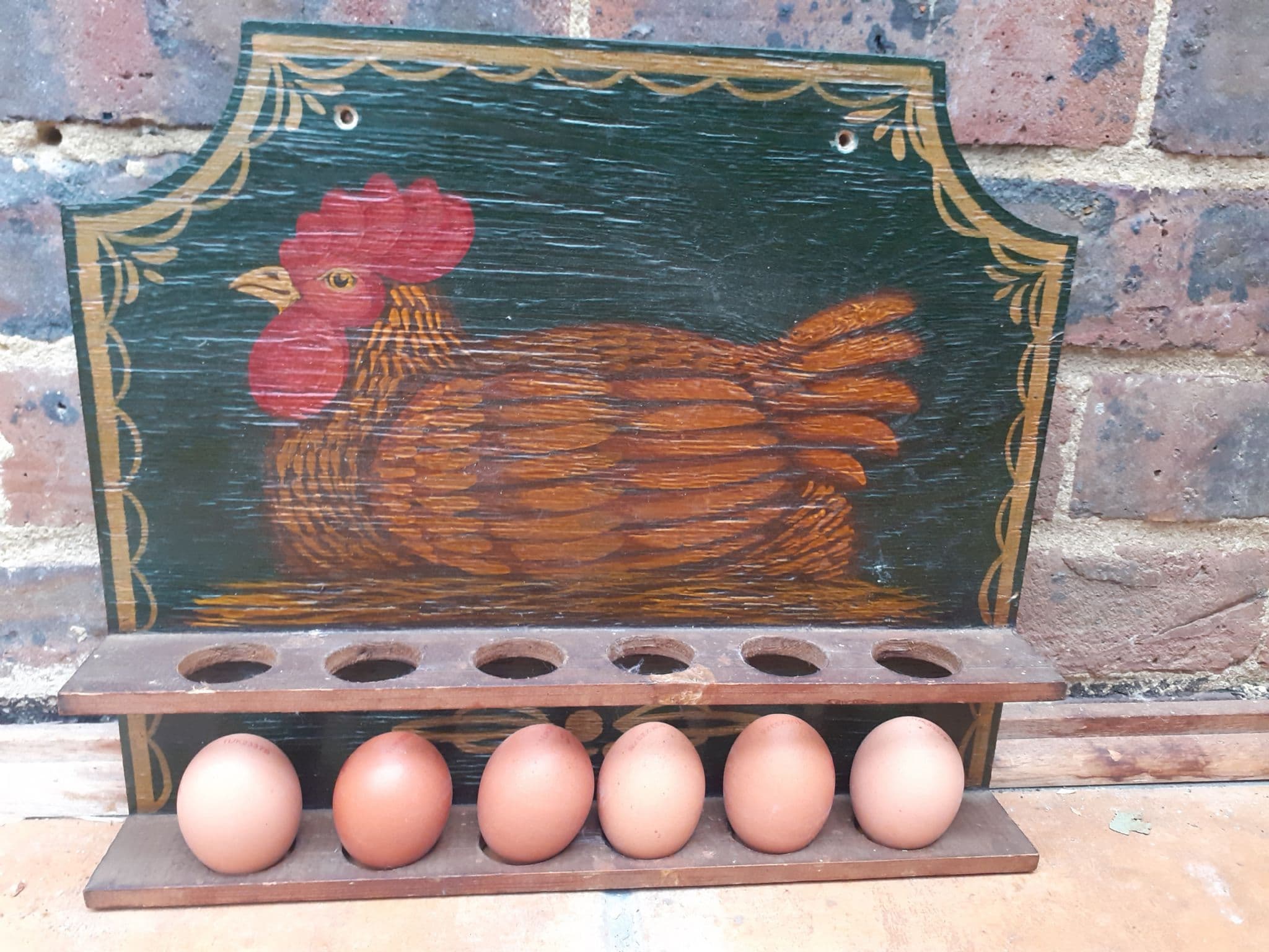 Home / Chickeny Things / Vintage Egg Holder..... SOLD Vintage Egg Holder..... SOLD £28.00 Stock Status: Sold Out Sorry, this item is out of stock Add to your Wish List Info Lovely vintage wood hand painted egg rack / holder, with chicken picture detail .... can be wall mounted... holds a dozen eggs